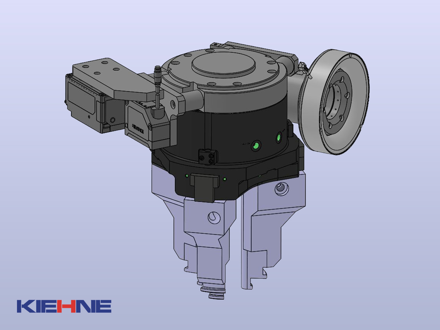 - Sondergreifer zum Aufspannen und Rotieren von rotationssymmetrischen Bauteilen. Bauteilabmessungen und Gewicht nach Anfrage.